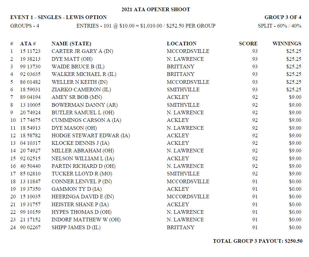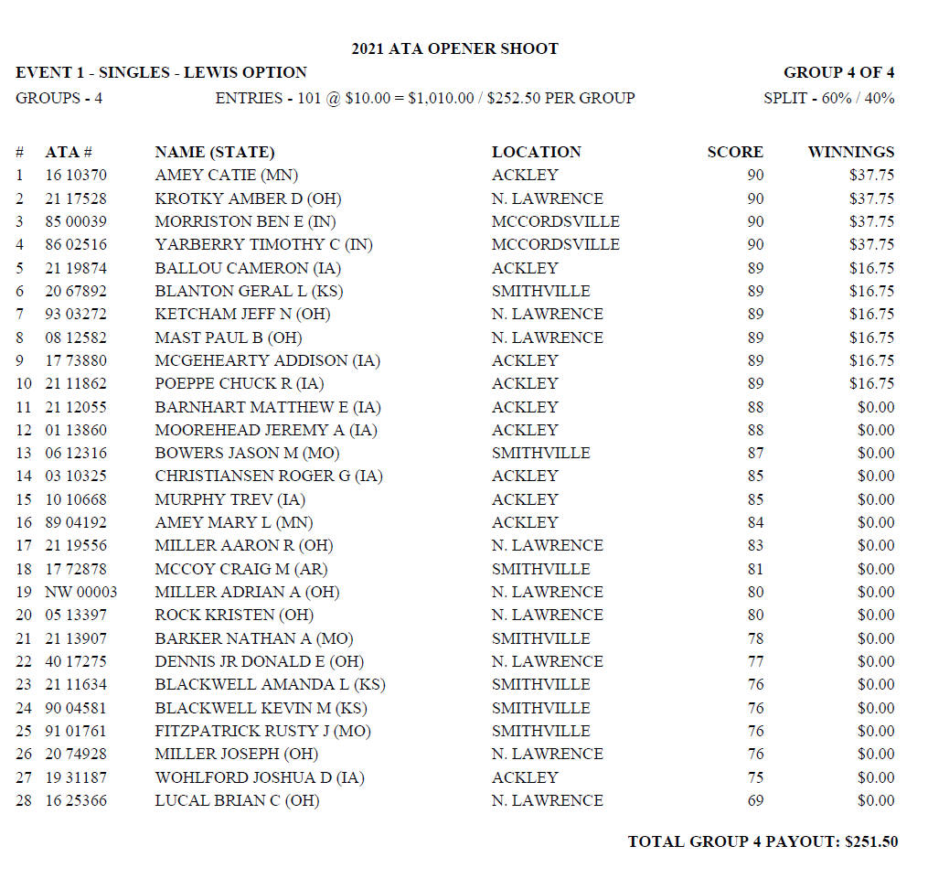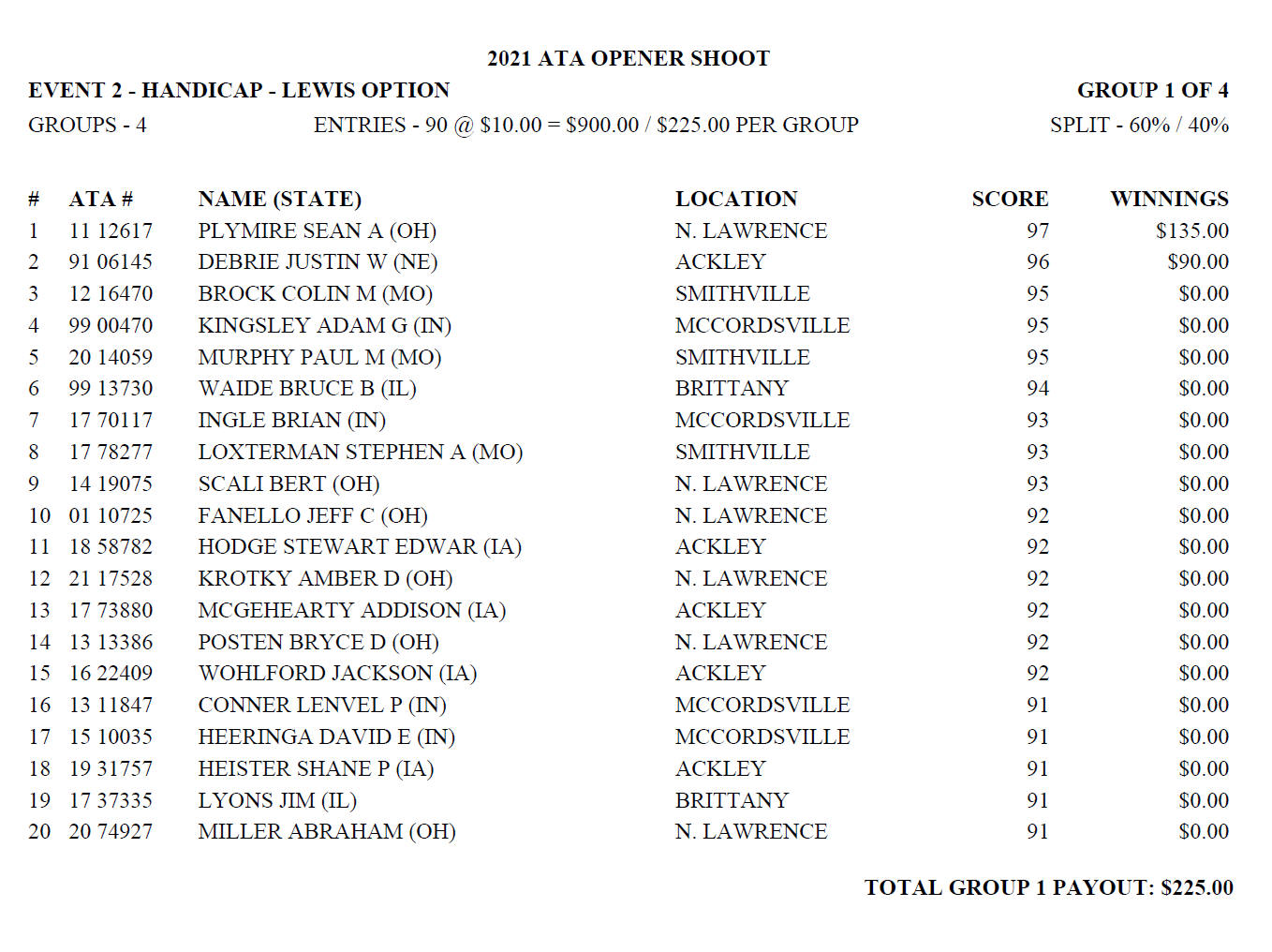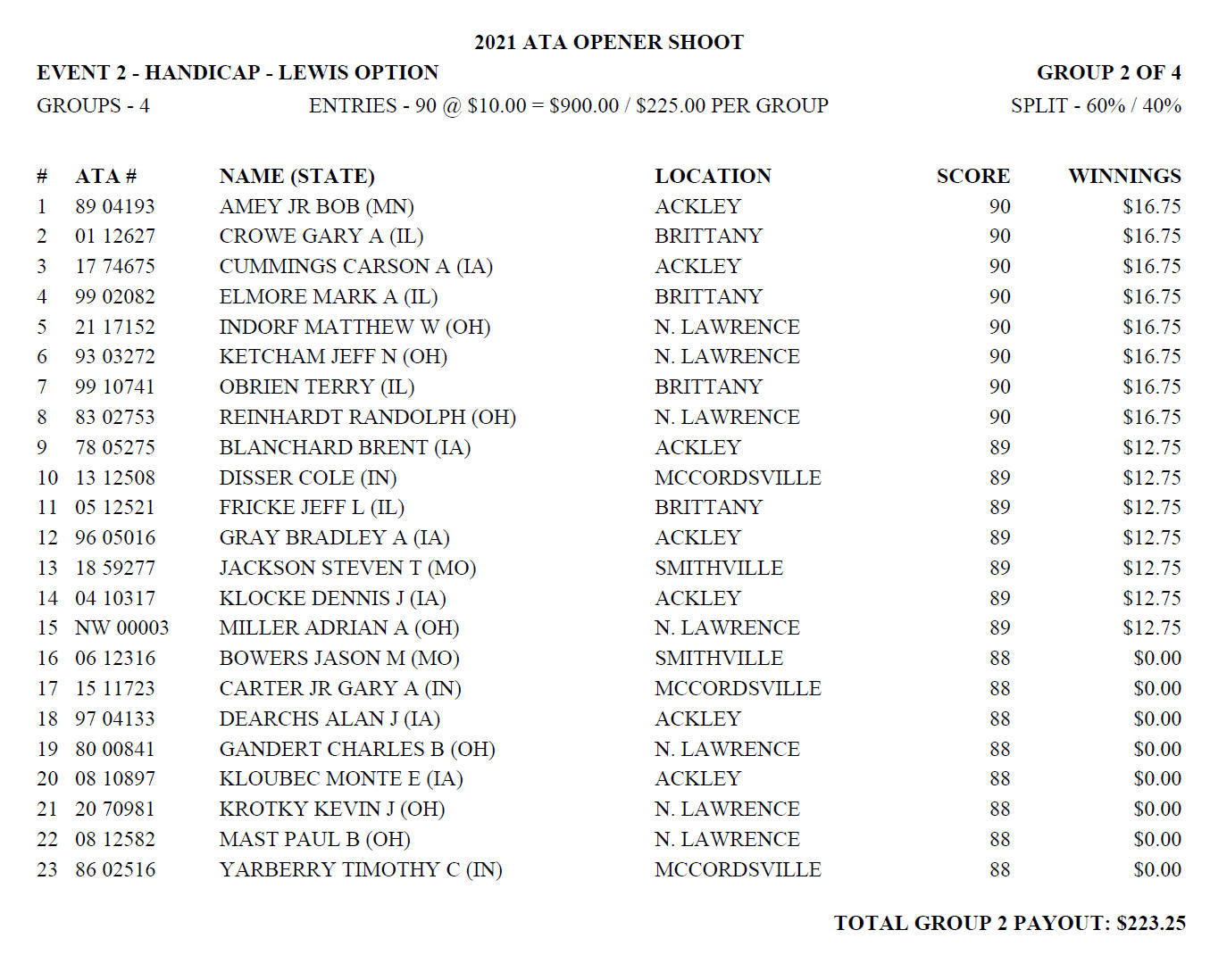 Saturday Handicap Lewis