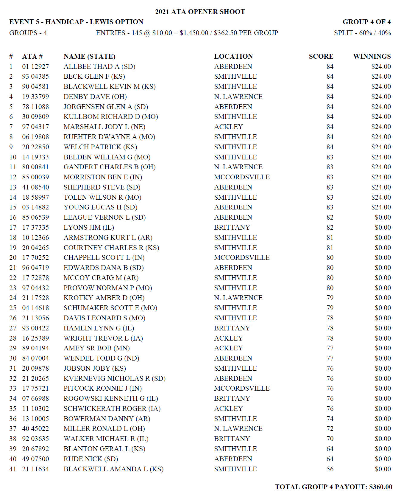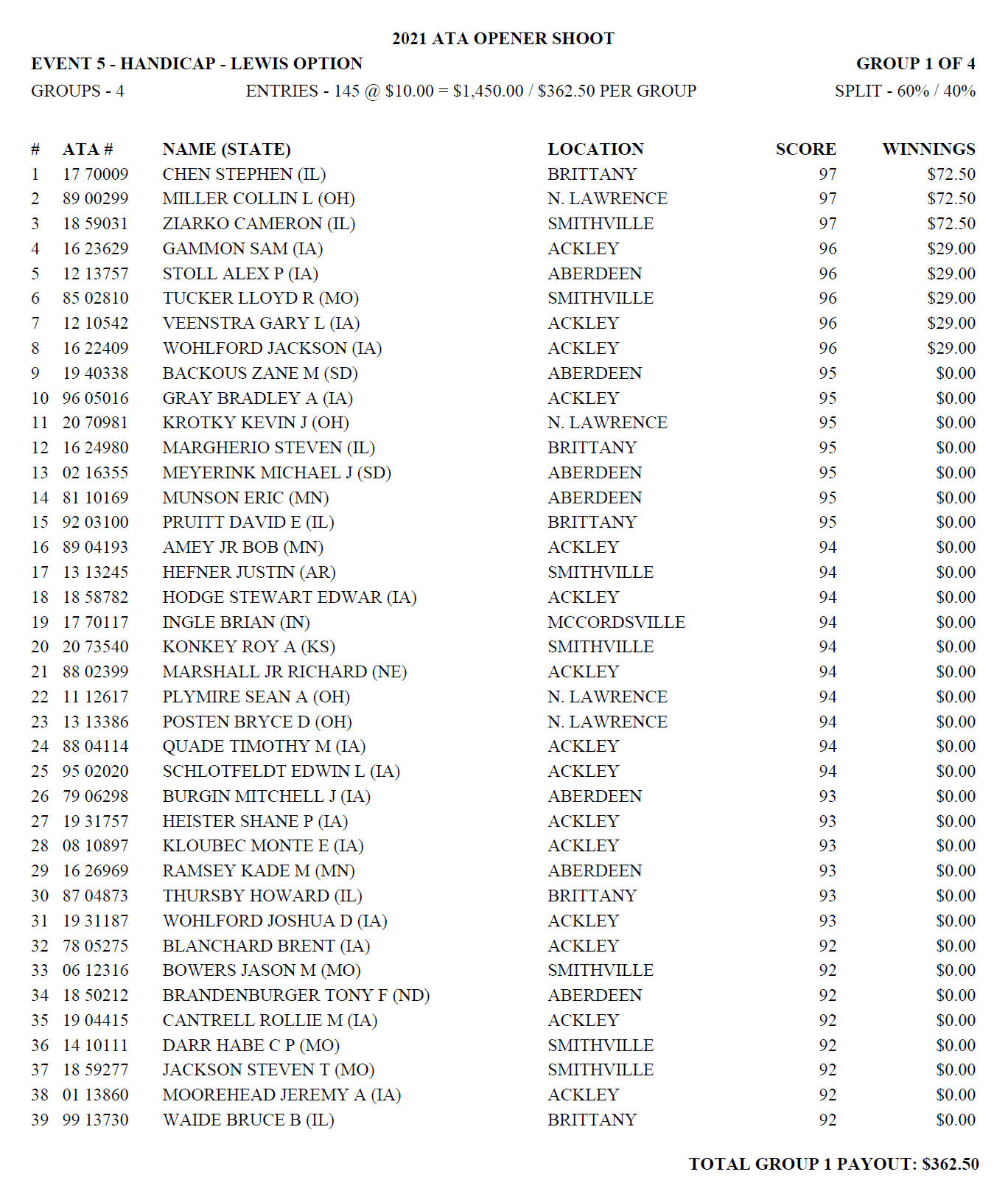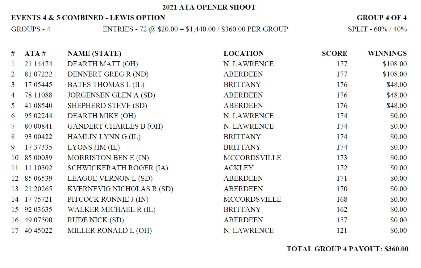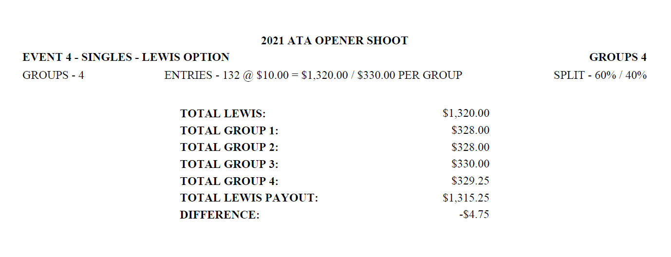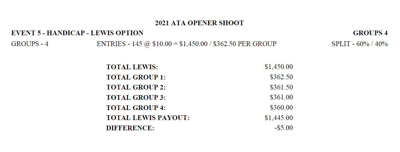 Sunday Lewis Payoffs