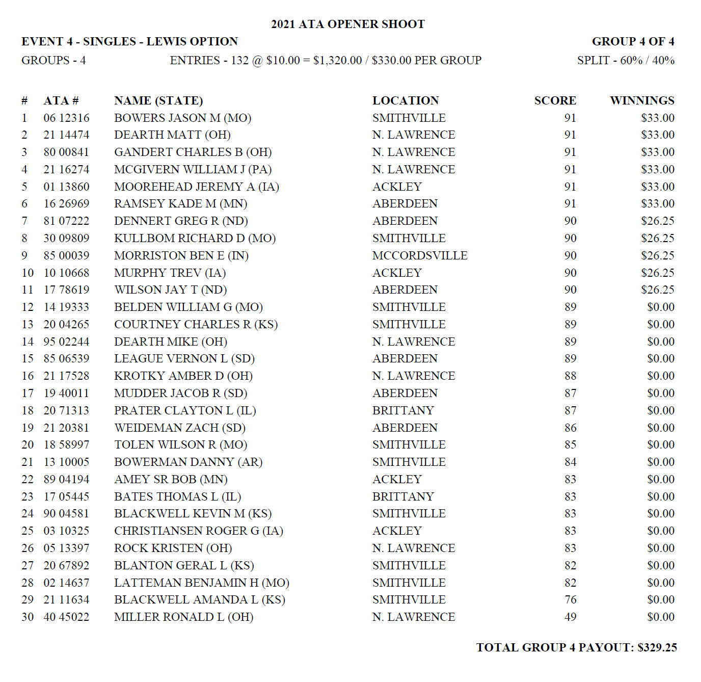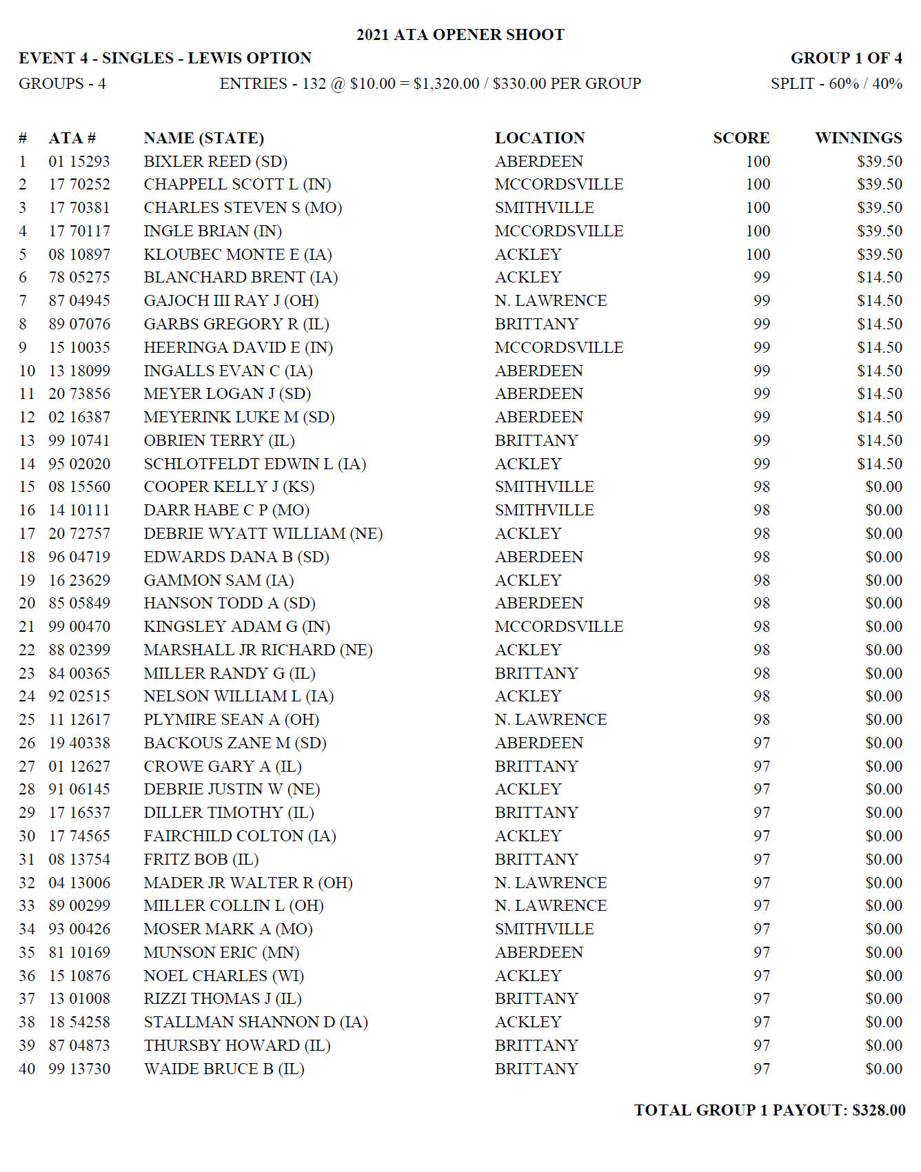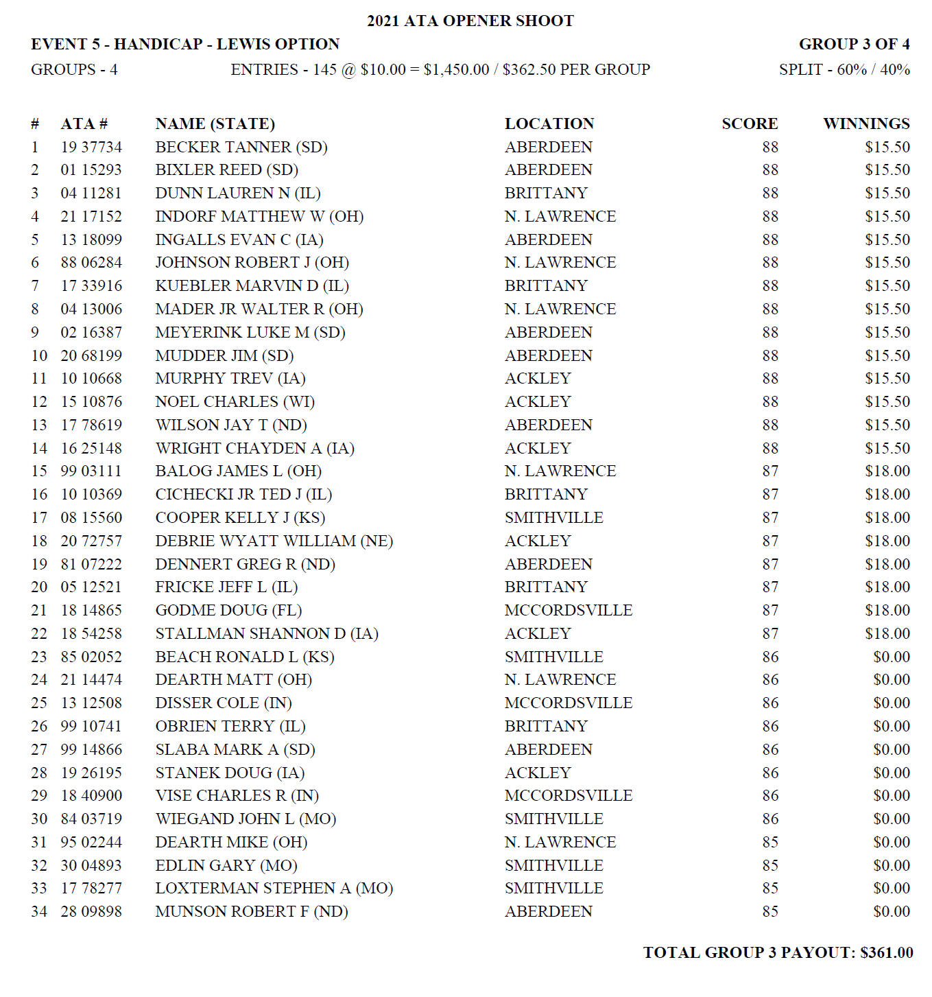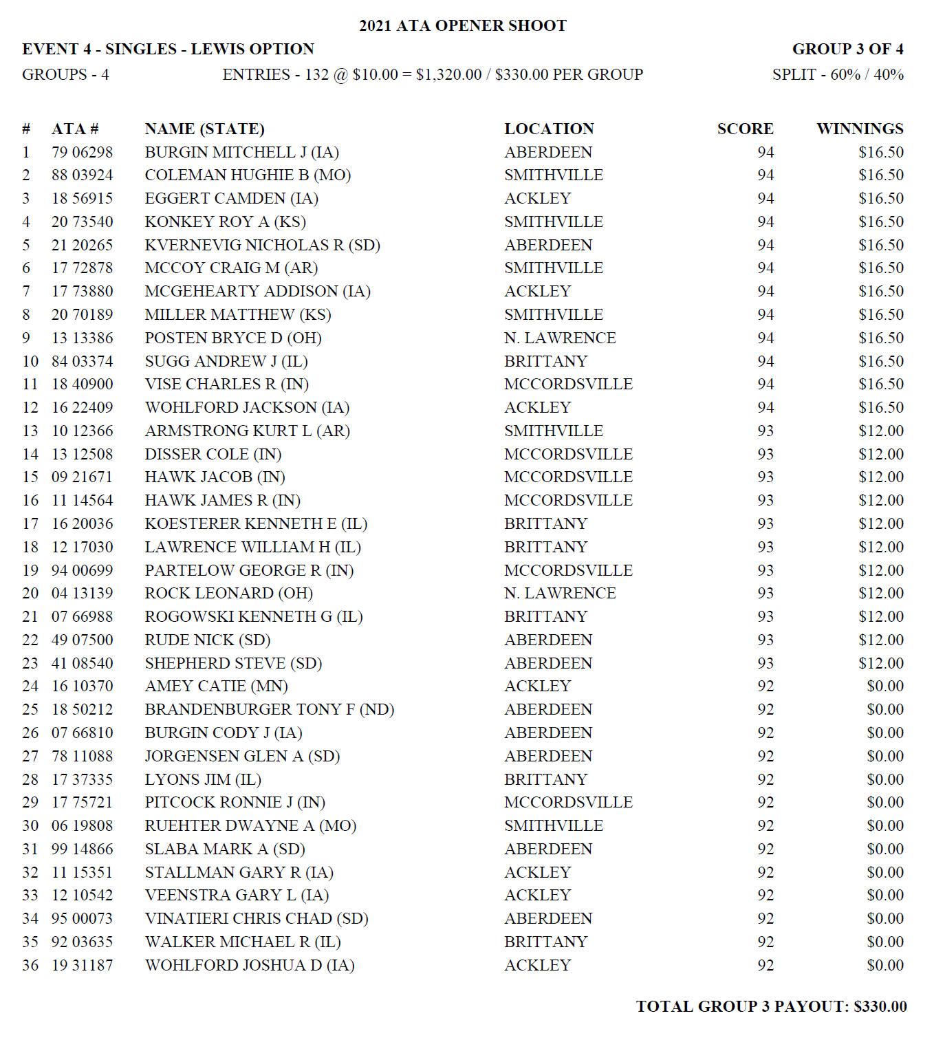 Sunday Lewis Payoffs