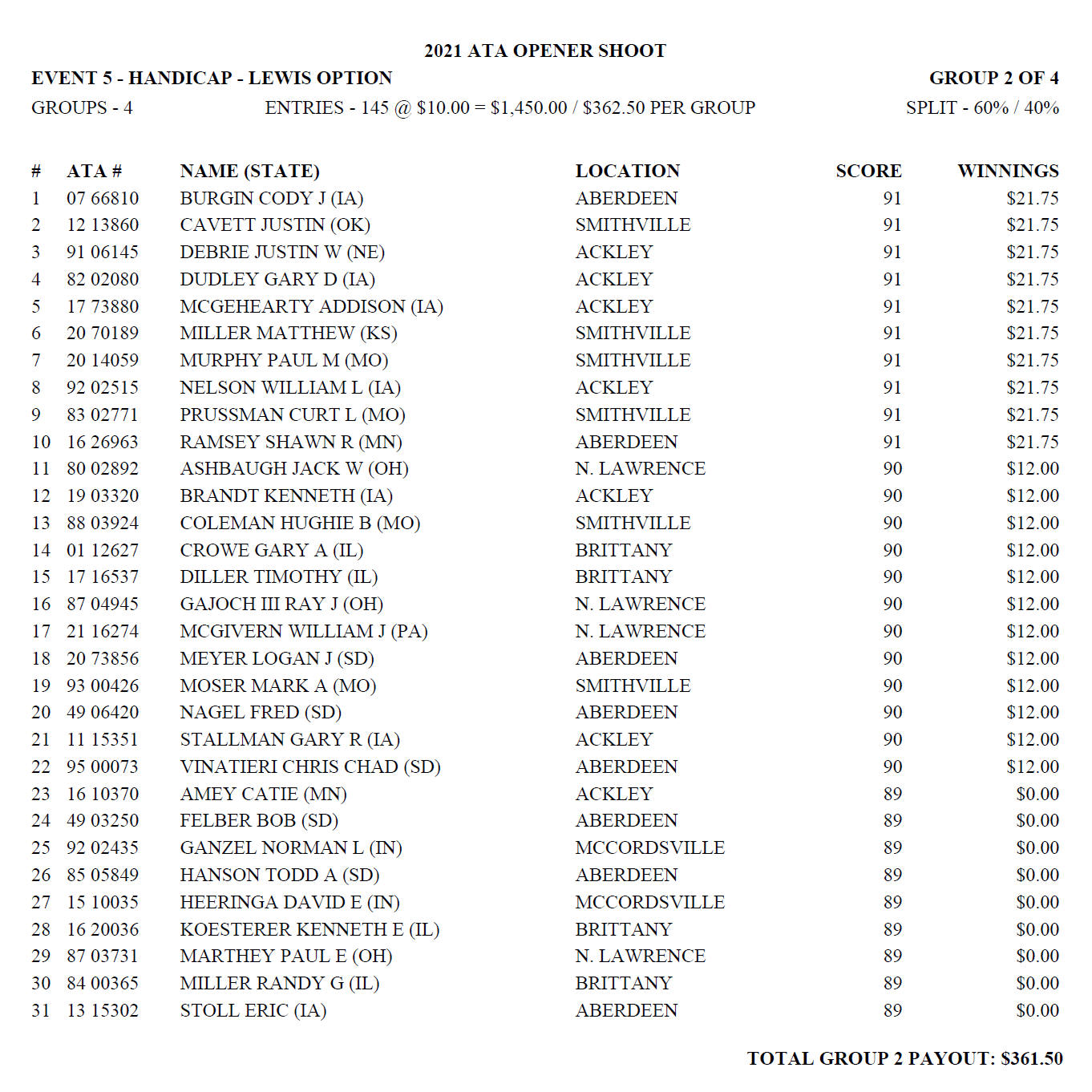 Sunday Handicap Lewis
