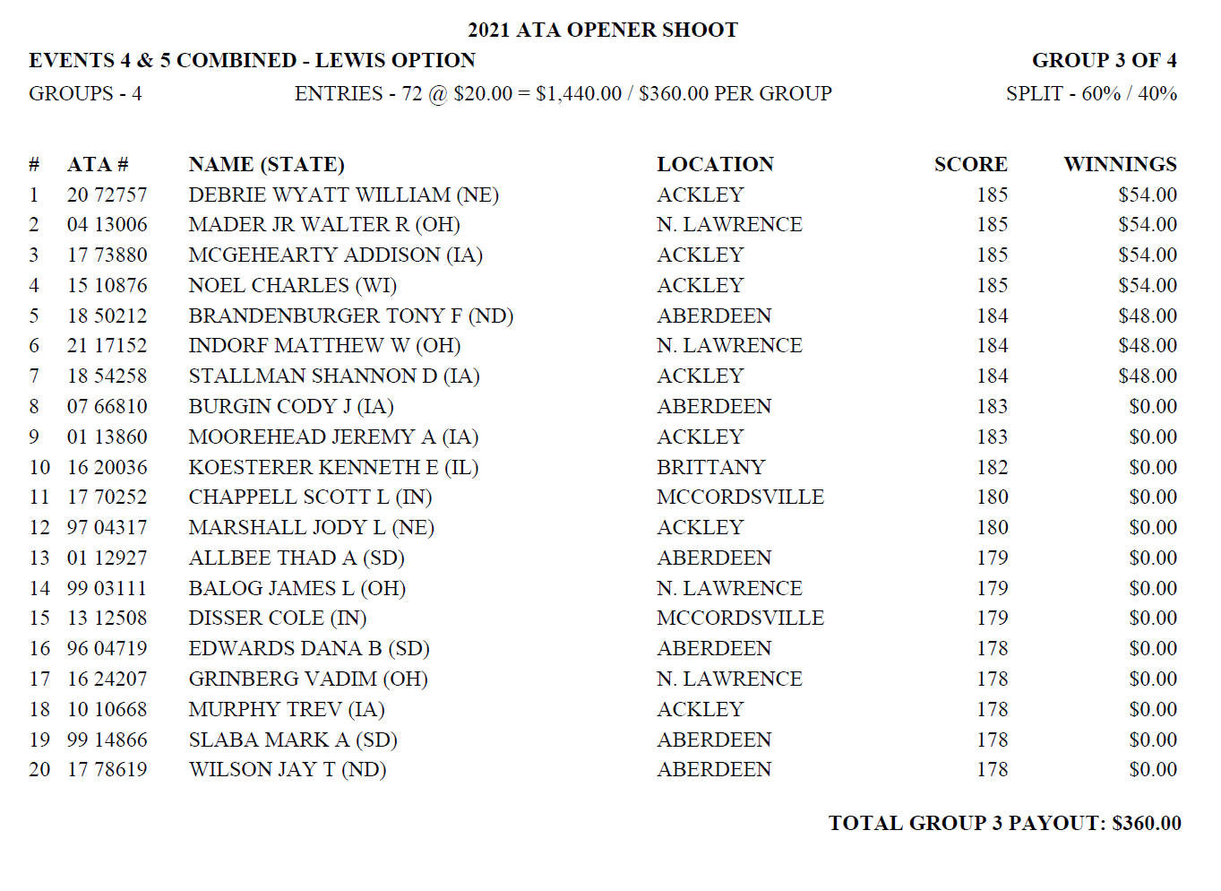 Sunday Combined 200 Lewis