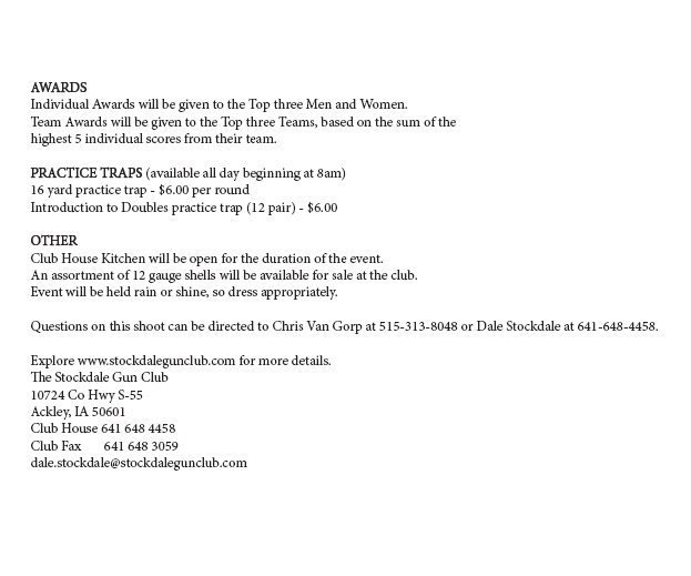 The event will be considered and ran as an ATA registered shoot. All ATA rules
