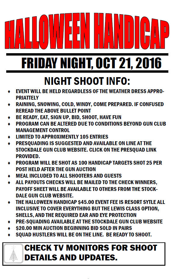 2016 HALLOWEEN HANDICAP INFORMATION PAGE