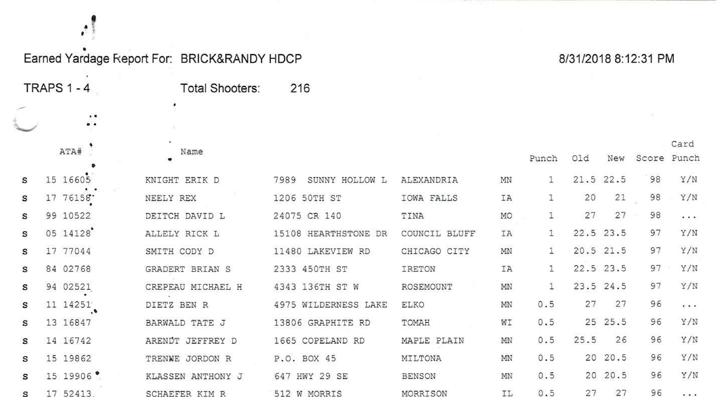 FRIDAY 8/31/2018 EARNED YARDAGE