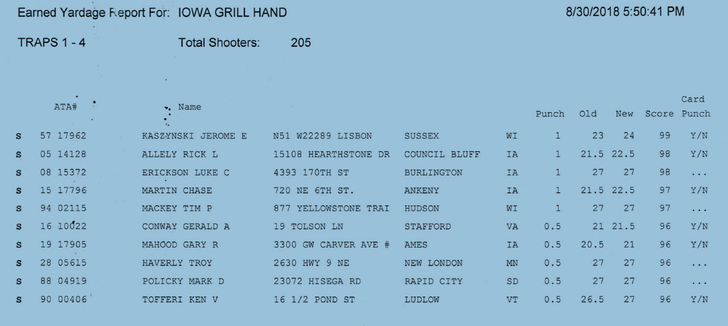 SATURDAY 9/1/2018 EARNED YARDAGE