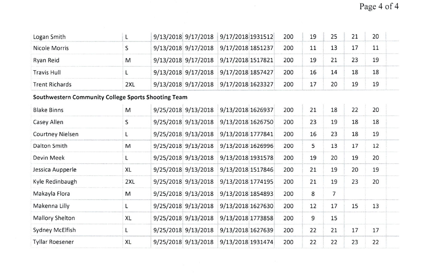 2019 IOWA COLLEGIATE STATE SHOOT SCOREBOARD