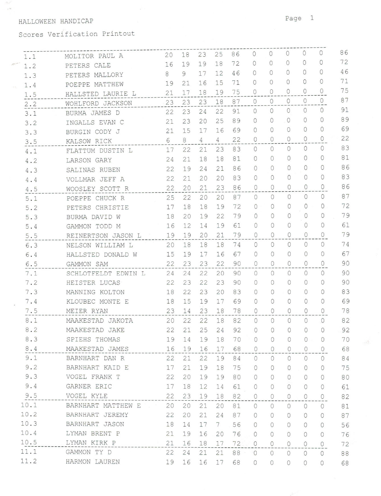 2021 Halloween Handicap Scores