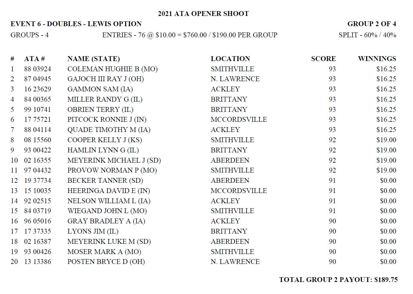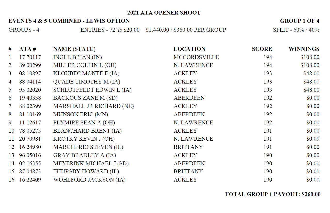 Sunday Lewis Payoffs