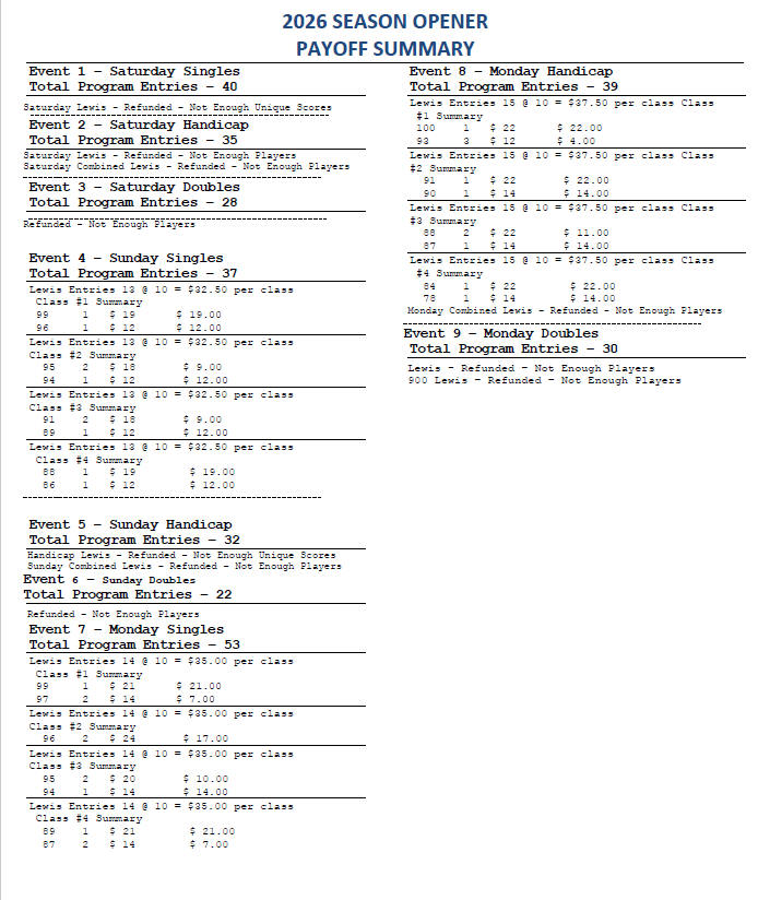 Season Opener Payoff info